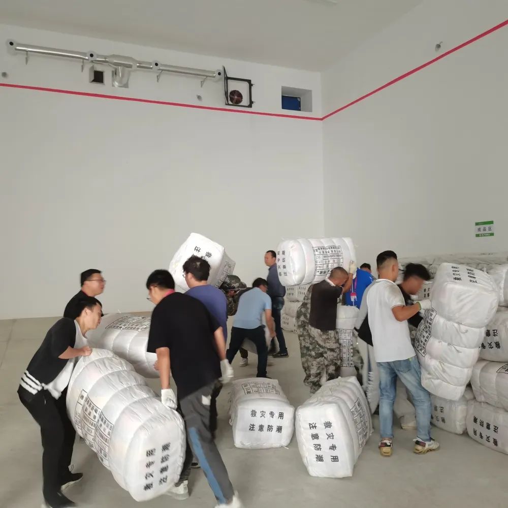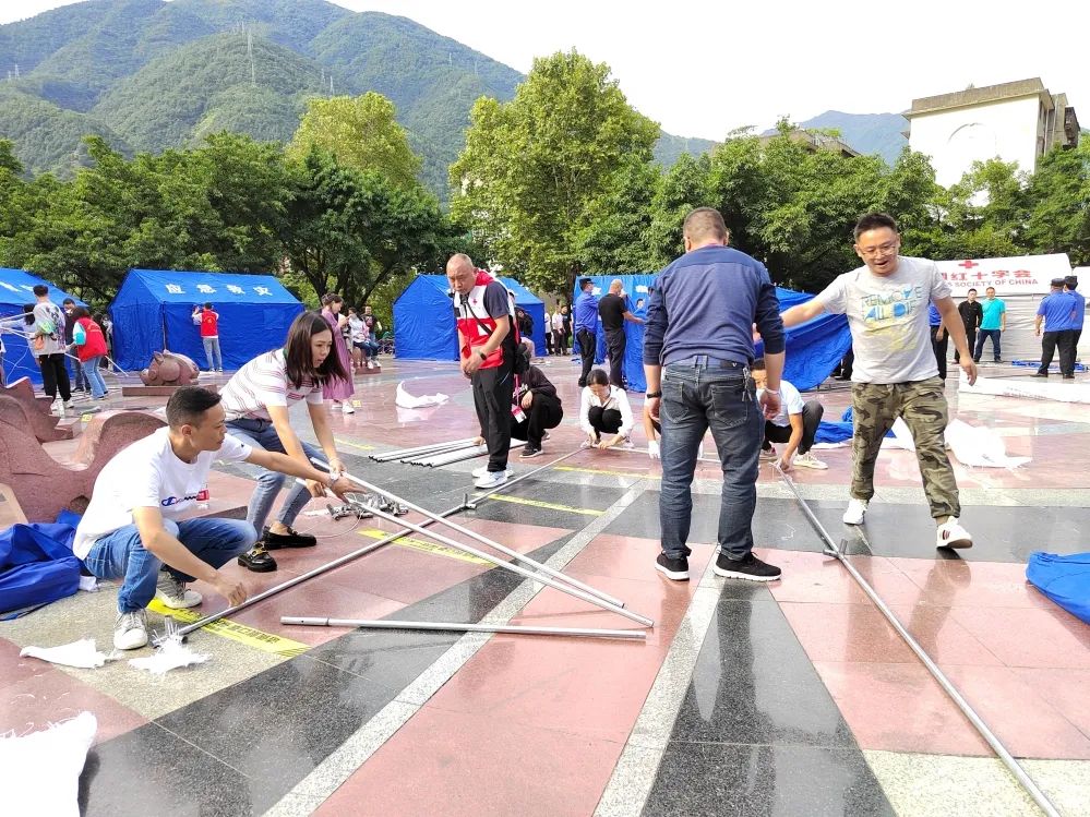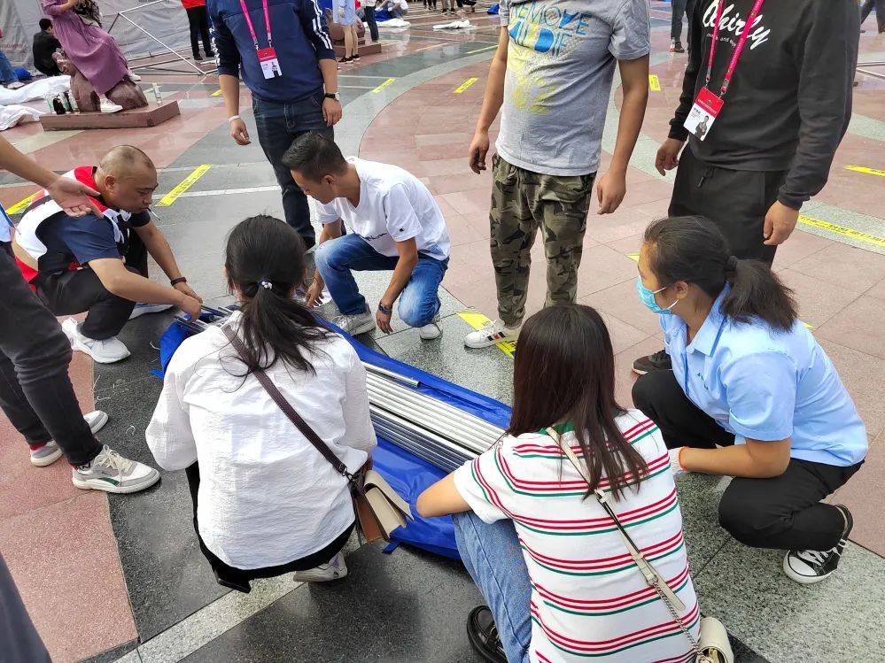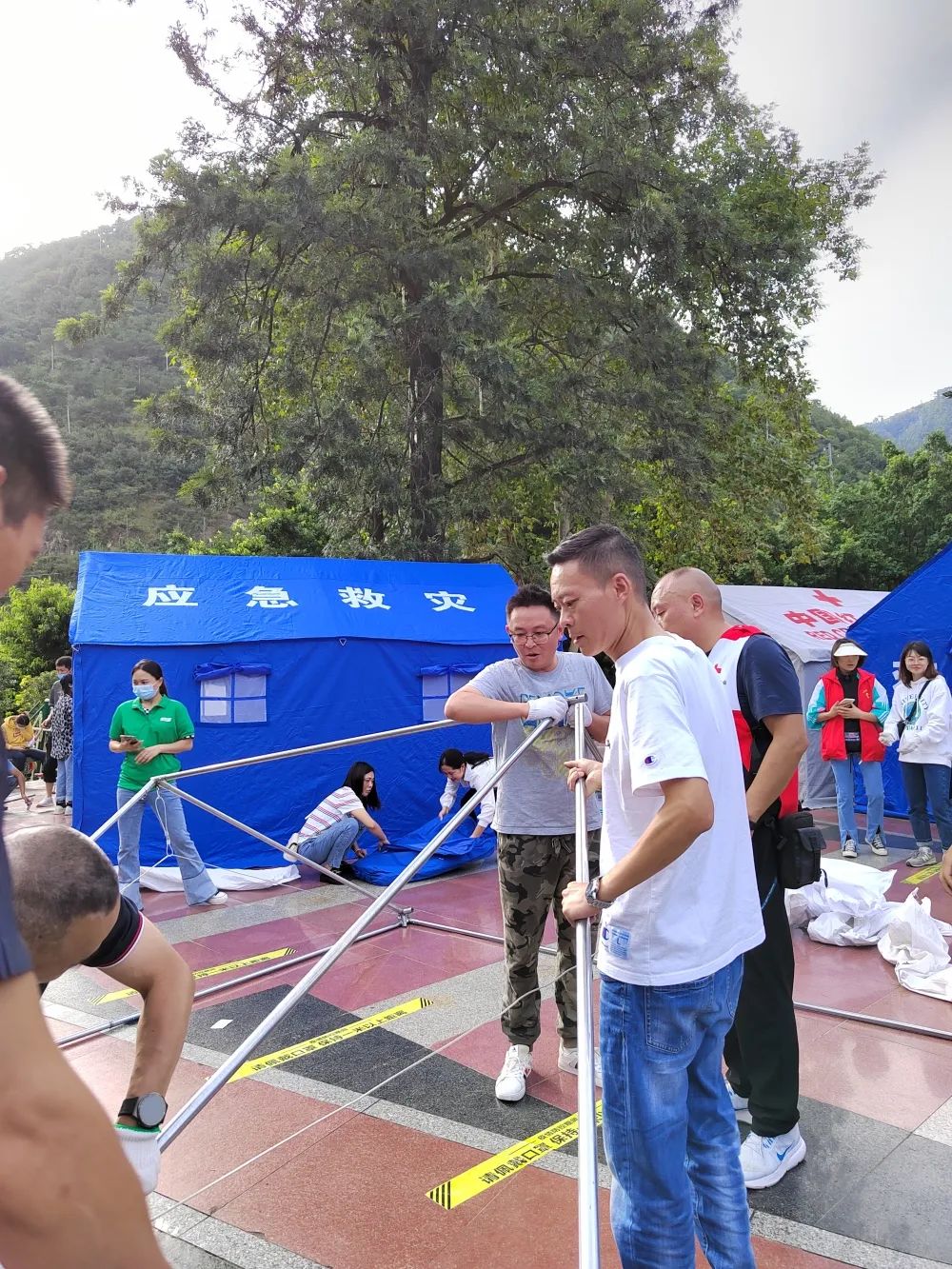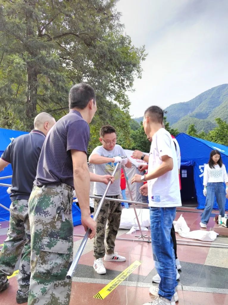 “晟豐后援一分隊”協助震后安置點搭建帳篷及鋪設折疊床