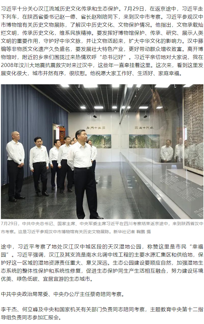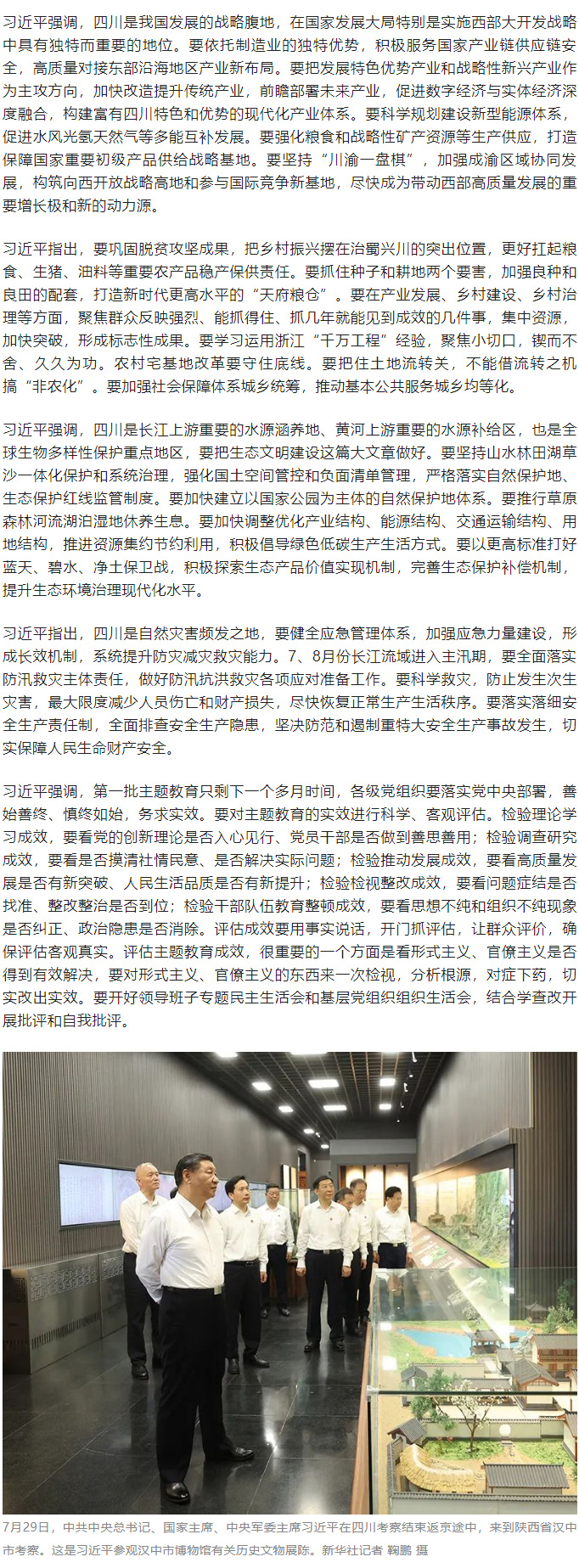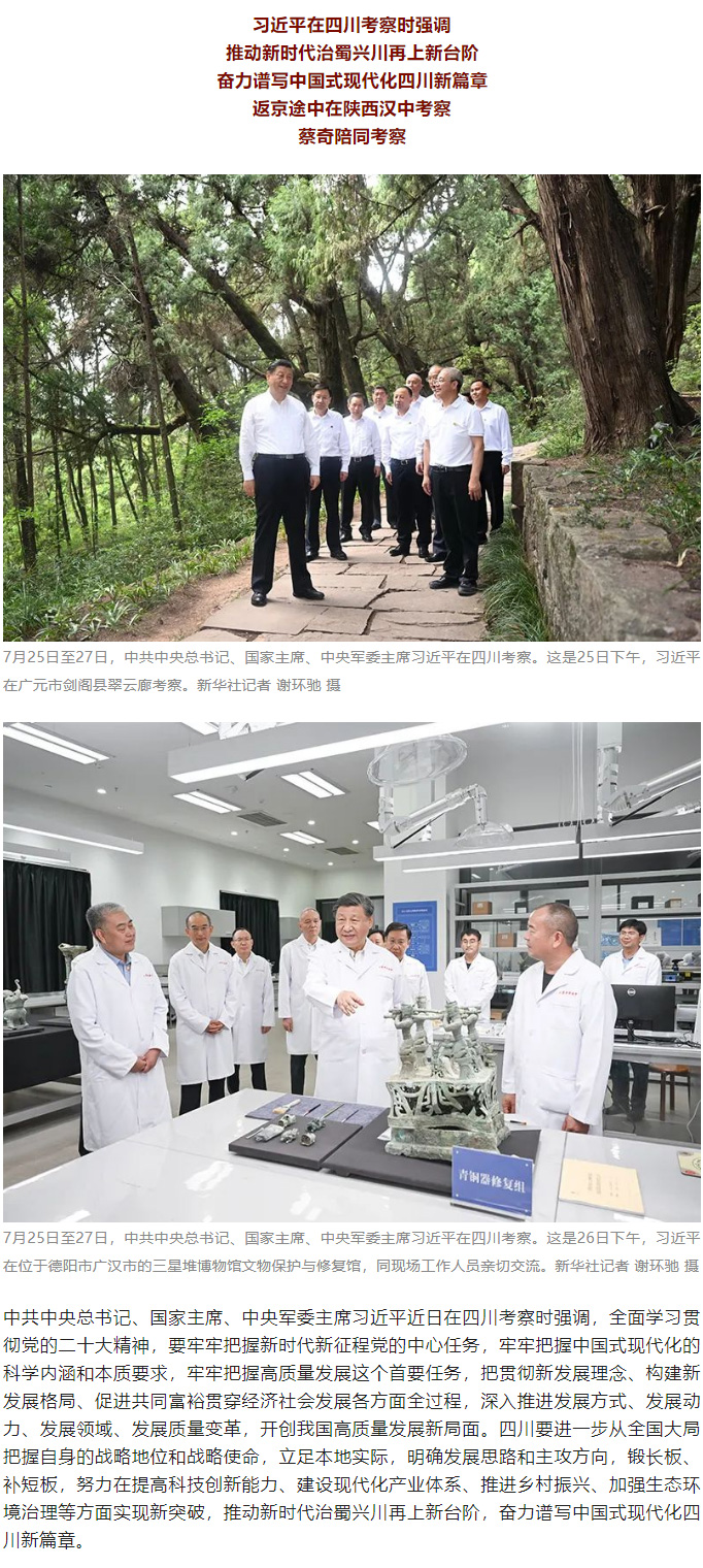 習近平在四川考察時強調 推動新時代治蜀興川再上新臺階 奮力譜寫中國式現代化四川新篇章 返京途中在陜西漢中考察
