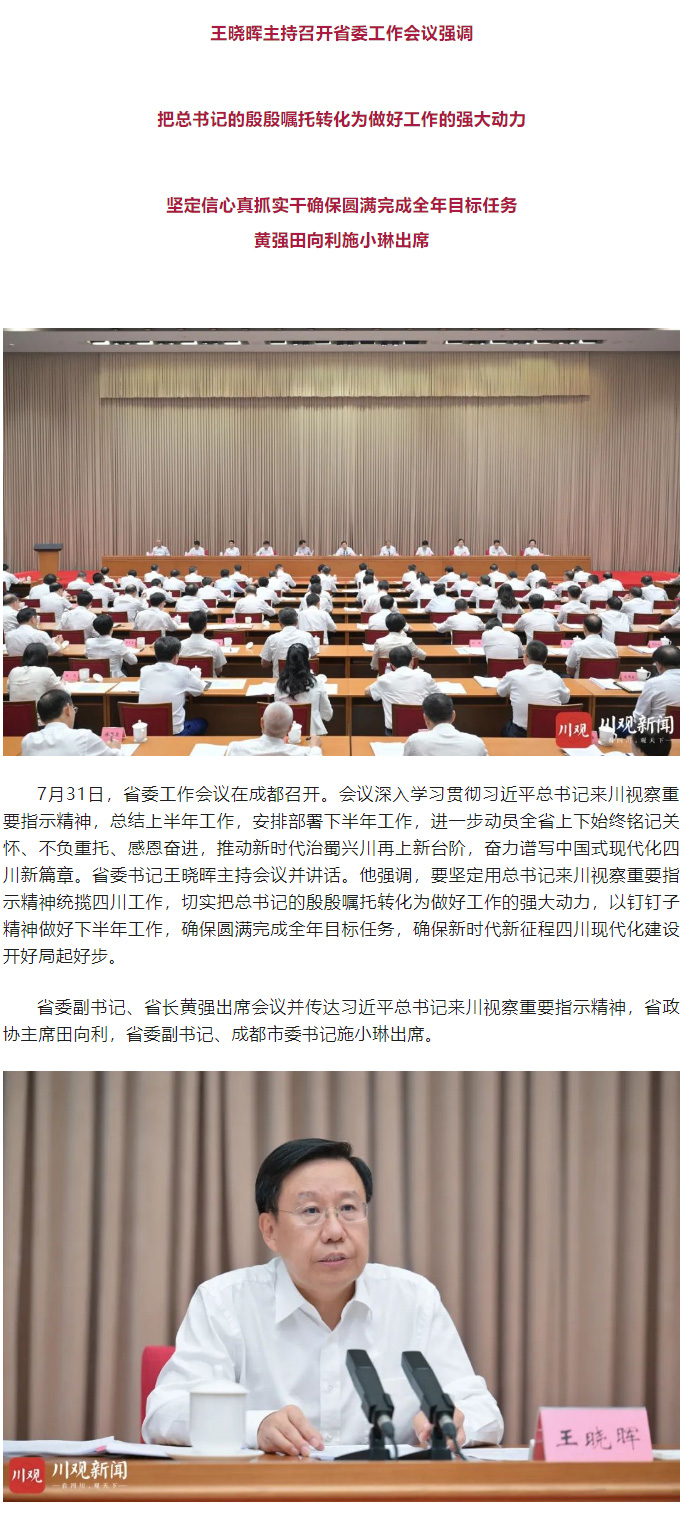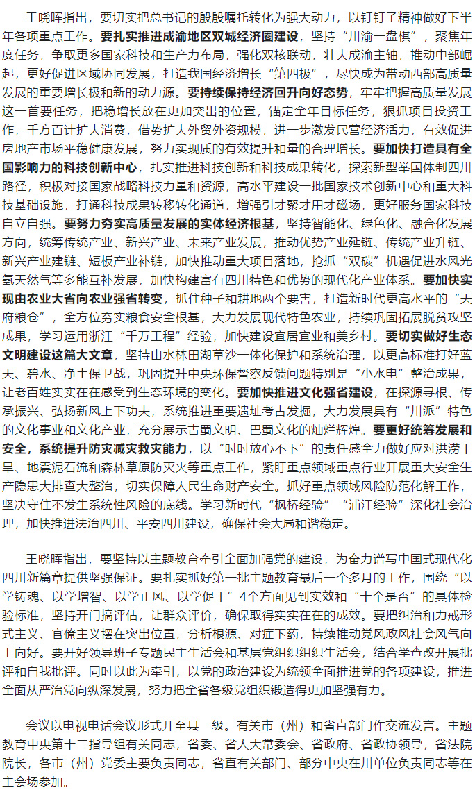 王曉暉主持召開省委工作會議強調:把總書記的殷殷囑托轉化為做好工作的強大動力,堅定信心真抓實干確保圓滿完成全年目標任務