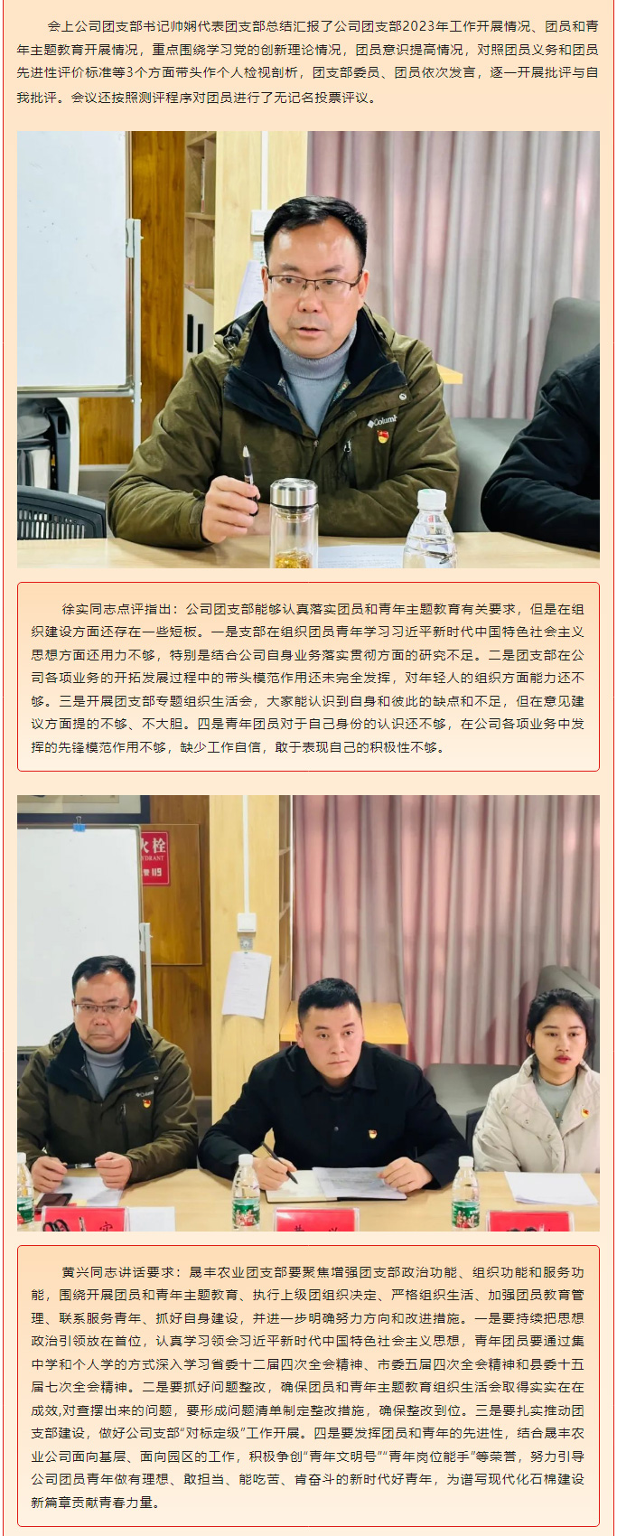 石棉晟豐農業公司團支部召開團員和青年主題教育專題組織生活會