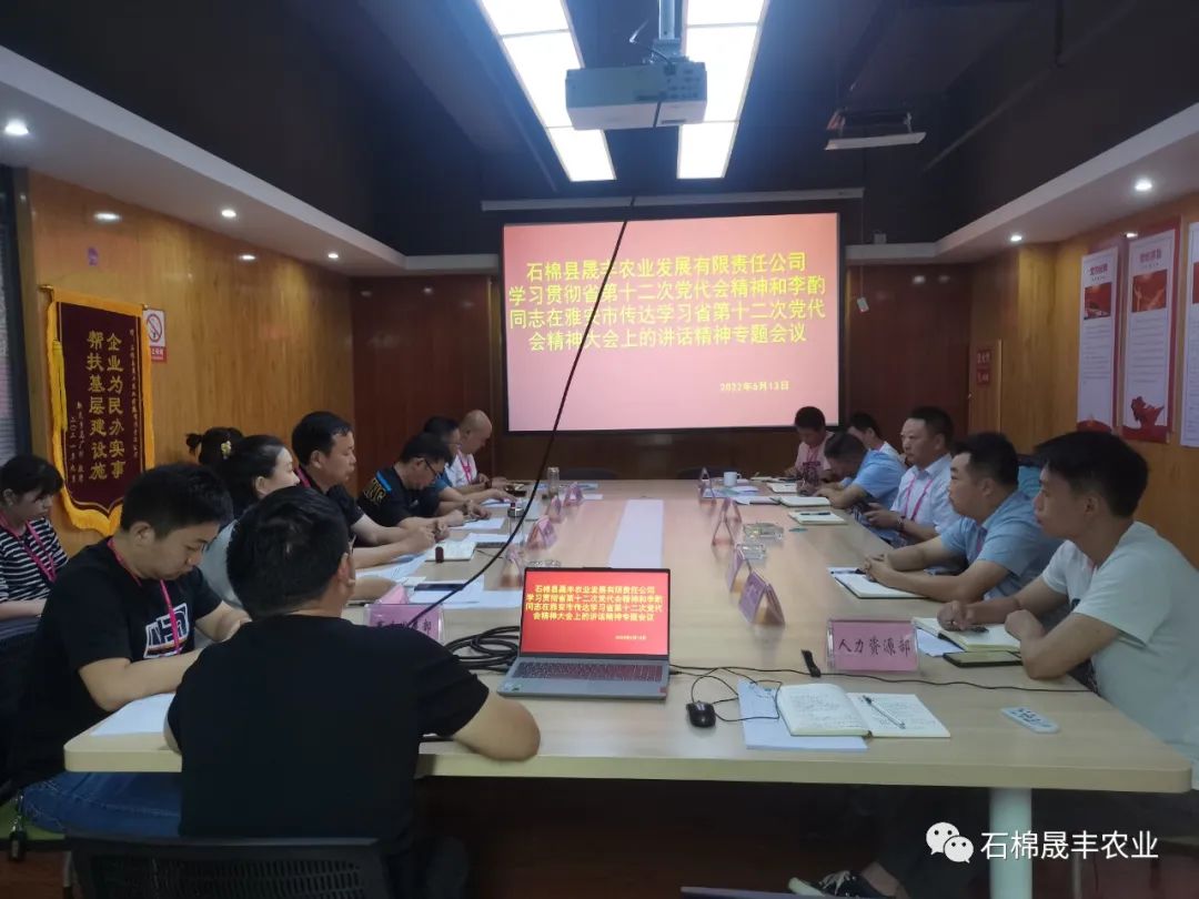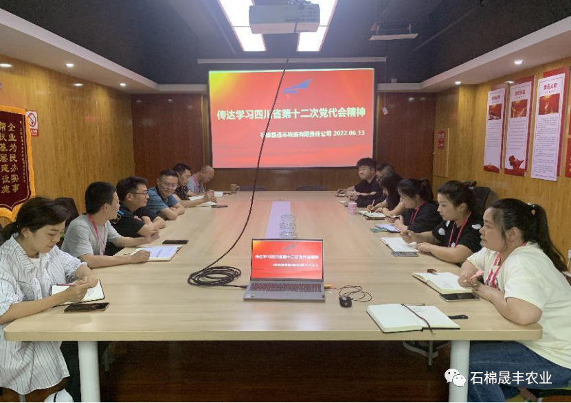 5 月 27 日至 5 月 30 日,中國共產(chǎn)黨四川省第十二次代表大會(huì)在成都召開。6月13日,晟豐農(nóng)業(yè)公司召開專題會(huì)議,傳達(dá)學(xué)習(xí)省第十二次黨代會(huì)精神。晟豐公司董事長鄭烽同志、晟豐公司黨支部書記徐實(shí)同志、晟豐公司副總經(jīng)理?xiàng)钪就境鱿瘏?huì)。